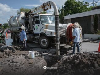 Gobierno municipal realiza desazolve de líneas de drenaje en la colonia López Portillo