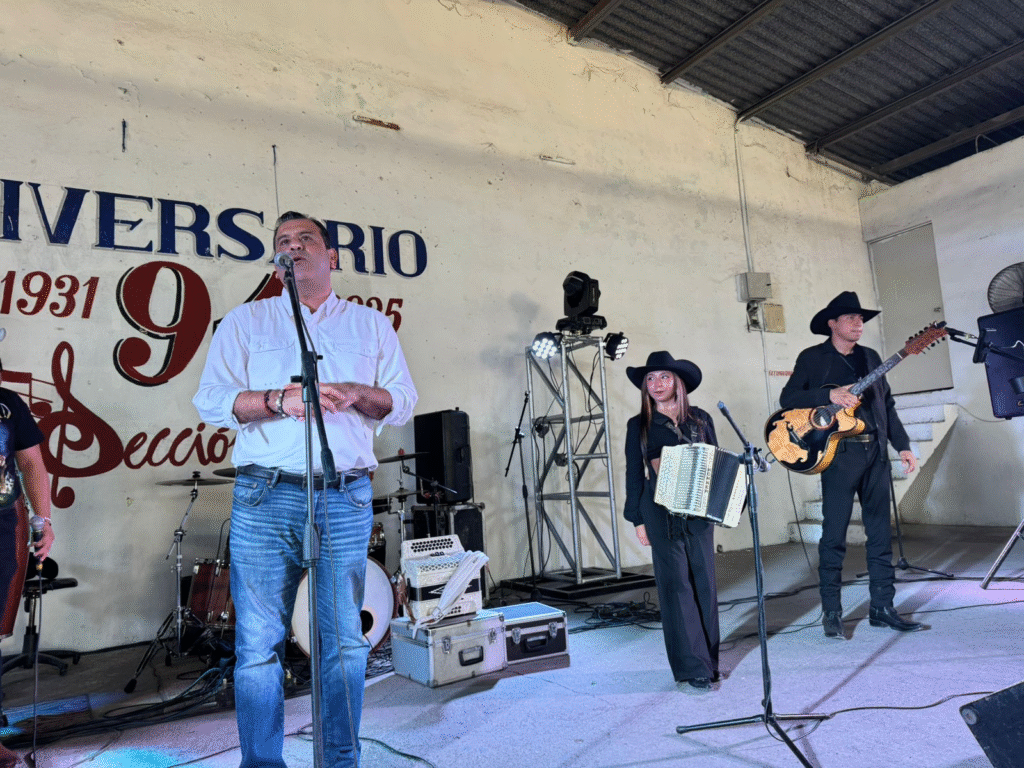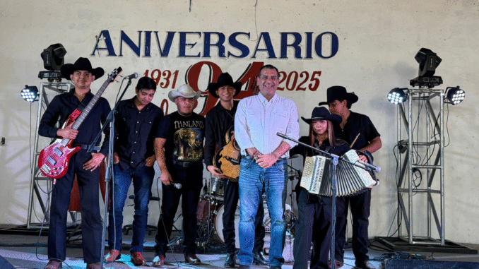 A nombre del presidente municipal y de su esposa, la señora Lucy de Gattas, el secretario del ayuntamiento acudió al salón Santa Cecilia a acompañar a los músicos en su 94 aniversario, junto a las familias.
