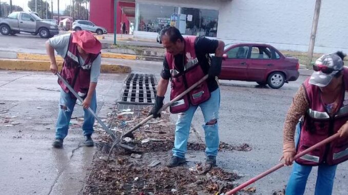 Cd. Victoria, Tamaulipas. – Derivado de las intensas lluvias registradas en las últimas 48 horas y el pronóstico de precipitaciones puntuales intensas para los próximos días en Victoria, la Secretaría de Servicios Públicos en coordinación con Protección Civil Municipal llevan a cabo trabajos de limpieza, desazolve y recolección de basura en drenes y vialidades.