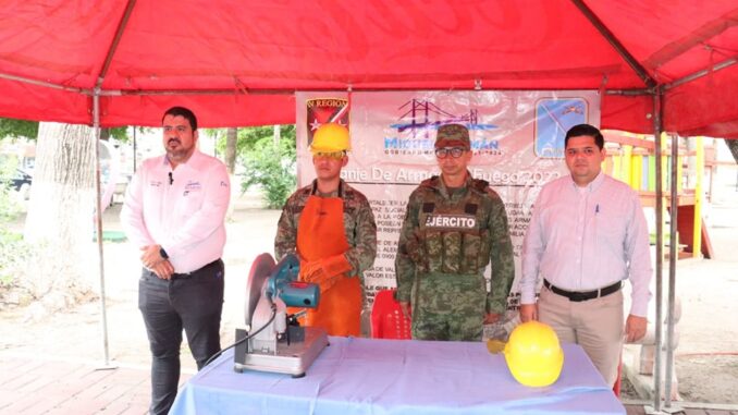 Al ponerse en marcha este martes el programa de Canje de Armas 2022 de la Secretaría de la Defensa Nacional (SEDENA) en la plaza principal, el Gobierno Municipal 2021-2024 que encabeza el alcalde, Biol. Ramiro Cortez Barrera, y el 25 Regimiento de Caballería Motorizado, a cargo del coronel Mario Gutiérrez Martínez, convocaron a la población a contribuir con el fortalecimiento de la legalidad, la seguridad y la paz social.