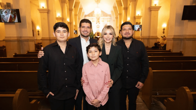 H. Matamoros, Tamaulipas.– En el marco de las celebraciones decembrinas, el alcalde de Matamoros, Beto Granados, asistió acompañado de su familia a la Misa de Noche Buena, oficiada por el Mons. Eugenio Andrés Lira Rugarcía en la Catedral de Matamoros, participando en una ceremonia marcada por la espiritualidad, la reflexión y el fortalecimiento de los lazos familiares.