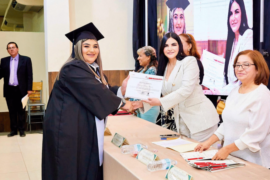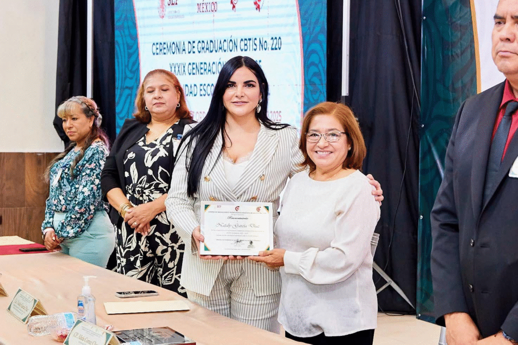 Además, tuvo el privilegio la presidenta municipal, Nataly García de recibir un reconocimiento por ser madrina de generación, un gesto que emocionó el alma de la alcaldesa Como exalumna, al volver a este espacio que marcó su juventud y compartió este momento con la comunidad educativa, que es algo que siempre llevará en el corazón.