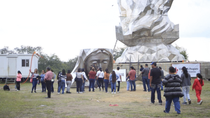 Hidalgo, Tamaulipas .- A pocos días de que la escultura monumental de la Virgen de la Misericordia quede terminada, el número de visitantes se incrementa y la devoción de las y los fieles ya se hace sentir y en cada paso hacia la majestuosa obra surge la admiración y el agradecimiento al gobernador Américo Villarreal por hacer realidad este proyecto.