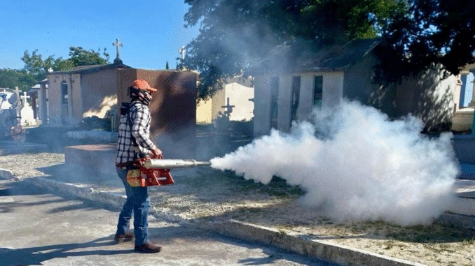 San Fernando, Tam.- En un esfuerzo conjunto para proteger la salud de las familias sanfernandenses, el Gobierno Municipal que encabeza la alcaldesa Verónica Aguirre coordina acciones con la Secretaría de Salud de Tamaulipas (SST), a través de la Jurisdicción Sanitaria No. VII, para reforzar las labores de fumigación y prevención del dengue en los panteones de la cabecera municipal.