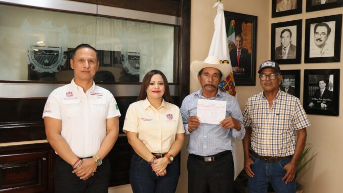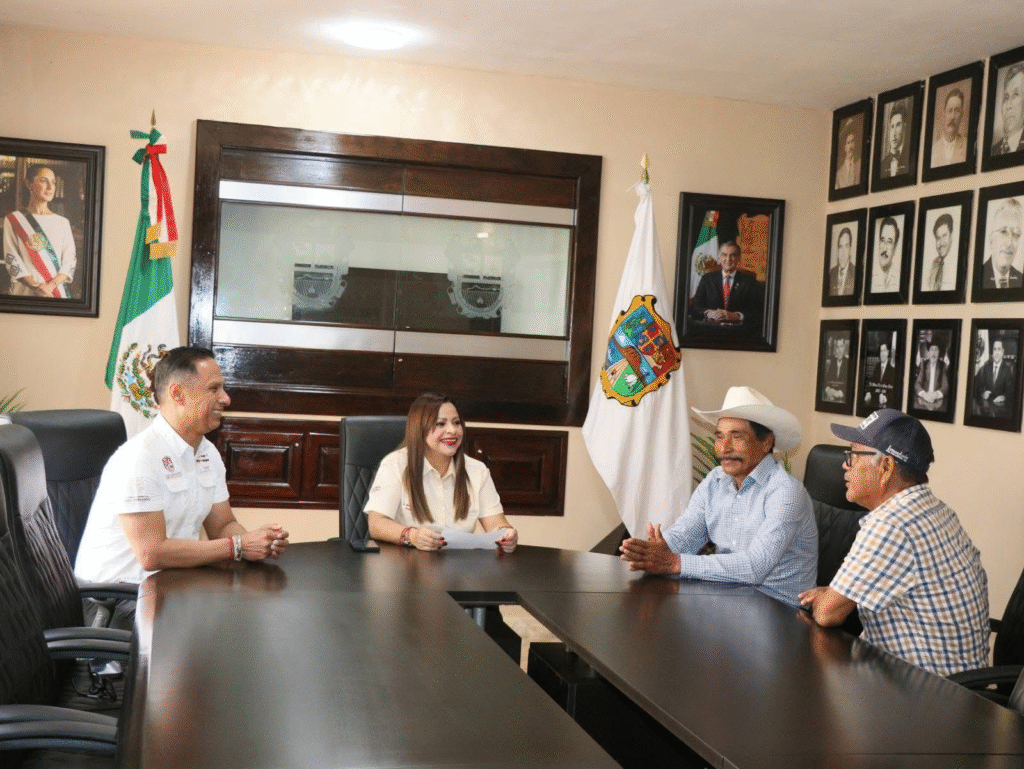 En reunión sostenida en la sala de Cabildo con autoridades del ejido Praxedis Balboa, encabezadas por el delegado Hilario Resendiz y David Armendariz, tesorero; la presidenta municipal dio respuesta inmediata a la solicitud presentada por los habitantes, realizando la entrega del recurso necesario para mejorar el acceso principal a la comunidad.