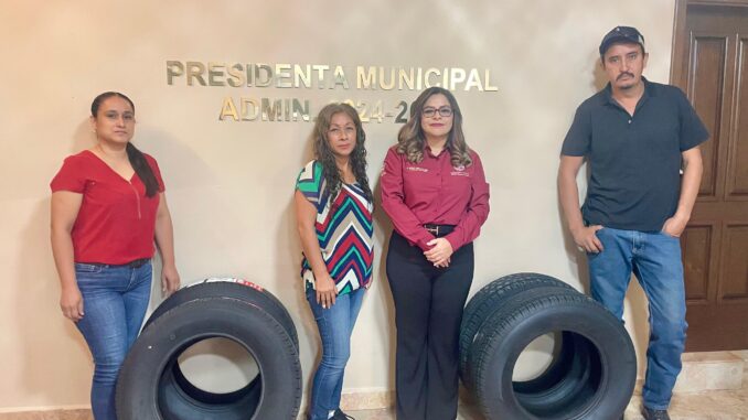 En la sala de cabildo, la primera autoridad municipal realizó la entrega de cuatro llantas nuevas destinadas a la unidad escolar que transporta diariamente a 20 alumnos hacia el CBTa 320 de González Villarreal y la Secundaria Técnica Francisco Vázquez Gómez.