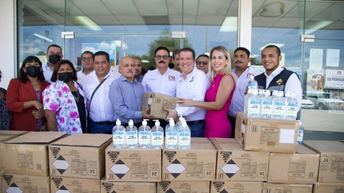 Dichas aportaciones altruistas se concretaron gracias a la buena disposición de los empresarios señalados con antelación, y consisten en un lote de 1 mil 200 botellas de gel anti-bacterial.