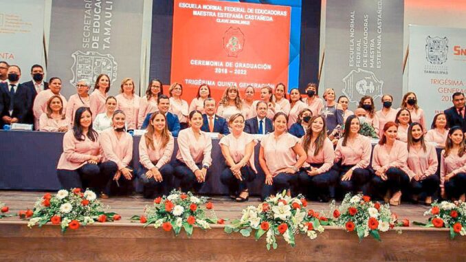 La ceremonia de graduación, de la generación 2018-2022 de la escuela Normal Federal de Educadoras, estuvo presidida por el Secretario de Educación Mario Gómez Monrroy; Rigoberto Guevara, dirigente de la Sección 30 del SNTE; Capitán Segundo de Infantería Luis Arellano García, en representación de la 48 Zona Militar, la Maestra Olga de la Rosa Estrada, directora del plantel.