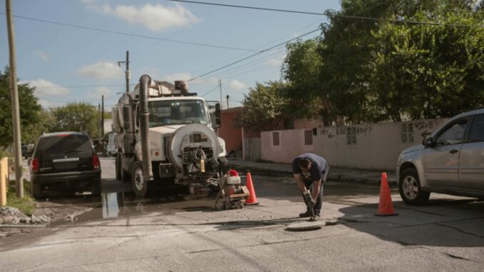 H. Matamoros, Tamaulipas.- Por instrucciones del alcalde Beto Granados, el desazolve en las líneas de drenaje sanitario se realiza diariamente en diversas colonias, con el objetivo de mantener un sistema eficiente y prevenir obstrucciones que afecten a las familias.