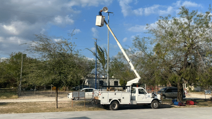 San Fernando, Tam.– El Gobierno Municipal encabezado por la presidenta Verónica Aguirre, siempre atento a las peticiones ciudadanas que llegan a la Casa del Pueblo, atendió la solicitud de instalación de luminarias en el parque de la colonia Valentina, beneficiando directamente a la cancha múltiple de basquetbol y fútbol rápido, la cual carecía de iluminación adecuada para la práctica de actividades deportivas en horarios vespertinos y nocturnos.