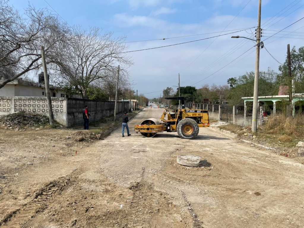 San Fernando, Tam.- La pavimentación hidráulica de la calle Simón Bolívar, una de las obras prioritarias impulsadas por el gobierno municipal encabezado por la alcaldesa Verónica Aguirre De los Santos, registra un avance del 80% en su fase de compactación de base hidráulica.