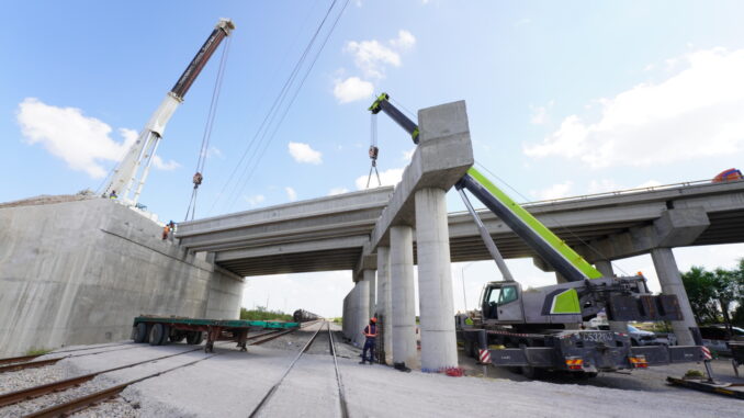 “Estas cuatro vigas son parte de un total de ocho que conformarán el primer tramo de la estructura. Hoy estamos aprovechando una ventana de tiempo sin movimiento ferroviario para trabajar con seguridad sobre el derecho de vía de Kansas City.