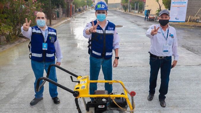 En seguimiento al compromiso que hizo con habitantes de la colonia Villas de San Miguel, el presidente municipal Enrique Rivas constató el avance de la repavimentación con concreto hidráulico de la calle Santa Esperanza.