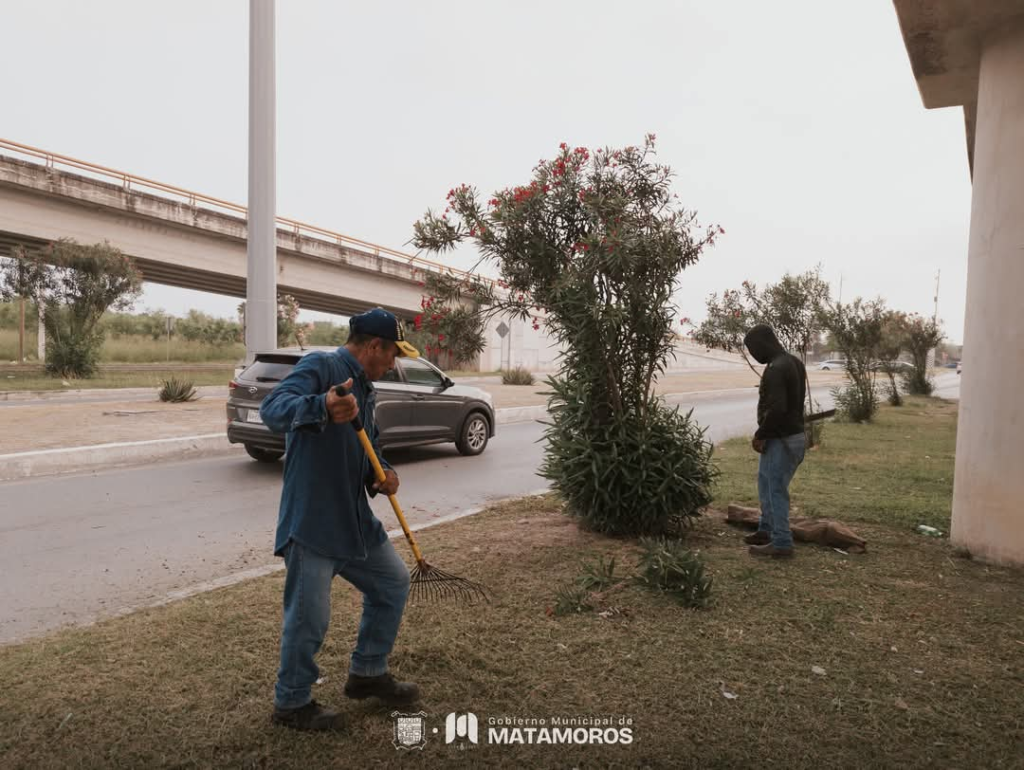 H. Matamoros, Tamaulipas.- El Gobierno Municipal, a través del departamento de espacios públicos, continúa realizando acciones contundentes para mejorar la imagen urbana y garantizar entornos saludables y seguros para todas las familias de Matamoros. Durante esta jornada, cuadrillas municipales llevaron a cabo labores de limpieza, desmonte, recolección de desechos, mantenimiento de áreas verdes y rehabilitación de espacios comunes en diversos sectores de la ciudad.