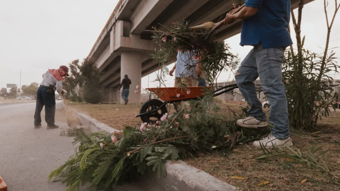 H. Matamoros, Tamaulipas.- El Gobierno Municipal, a través del departamento de espacios públicos, continúa realizando acciones contundentes para mejorar la imagen urbana y garantizar entornos saludables y seguros para todas las familias de Matamoros. Durante esta jornada, cuadrillas municipales llevaron a cabo labores de limpieza, desmonte, recolección de desechos, mantenimiento de áreas verdes y rehabilitación de espacios comunes en diversos sectores de la ciudad.