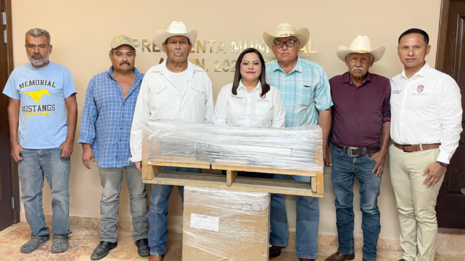 La entrega del equipo se oficializó durante una reunión celebrada en la sala de cabildo, encabezada por la alcaldesa Verónica Aguirre, quien recibió a los representantes del ejido: Marcos Romero Vega, Comisariado Ejidal; Jesús Martínez Rocha, delegado y presidente del comité del agua; Jaime Bocanegra Vázquez, así como los habitantes José Luis Martínez y Reyes Herrera Villegas.