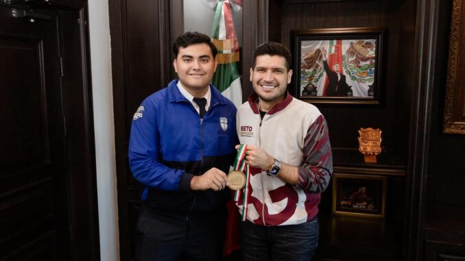 H. Matamoros, Tamaulipas.- El presidente municipal de Matamoros, Beto Granados, recibió la visita de Ángel Eduardo García Núñez, destacado atleta del equipo Tigres de Matamoros, quien ha representado con orgullo a nuestra ciudad y a México en competencias internacionales.