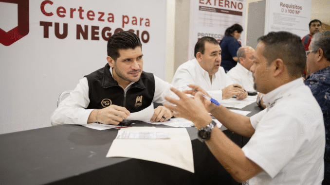 La reunión se llevó a cabo en el Centro de Convenciones Mundo Nuevo, donde empresarios locales acudieron con el propósito de regularizar sus establecimientos y recibir orientación directa por parte de las distintas dependencias municipales; asimismo, el Presidente Municipal agradeció la confianza de los comerciantes y empresarios en su administración.