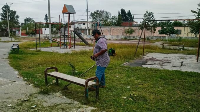 H. Matamoros, Tamaulipas.- Como parte del compromiso del alcalde de Matamoros, Beto Granados, con el rescate y mejoramiento de los espacios públicos, la cuadrilla Renace llevó a cabo trabajos en la Colonia México, enfocándose en la rehabilitación y mantenimiento del área verde y sus juegos infantiles.