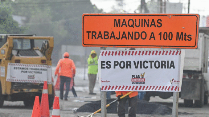 Cd. Victoria, 28 de octubre 2025. – Este martes, el alcalde de Victoria Eduardo Gattás Báez supervisó el avance del Plan Emergente de Bacheo en el fraccionamiento Teocaltiche, sector considerado en la ruta comercial de la ciudad.