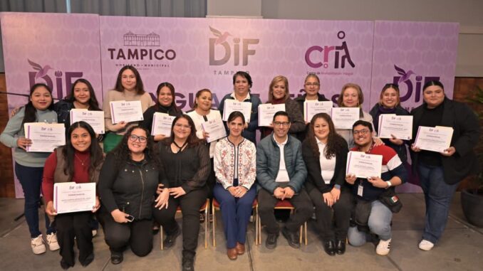 La Dra. Luz Adriana Villarreal, Presidenta del DIF Tampico, entregó reconocimientos y anunció que los cursos contarán con validez oficial.