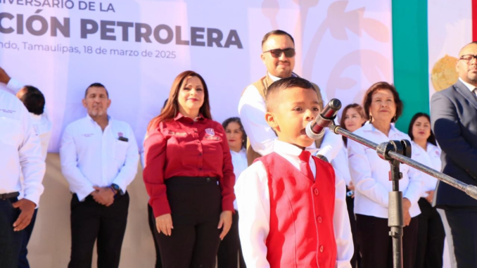 En su mensaje, la alcaldesa Verónica Aguirre recordó que un día como hoy, en 1938, el presidente Lázaro Cárdenas del Río nacionalizó la industria petrolera, un hecho que marcó la historia económica del país. Señaló que Tamaulipas es el quinto productor de hidrocarburos en México y que esta actividad representa una de las principales fuentes de ingresos para el país.