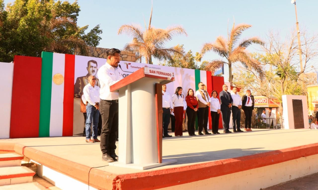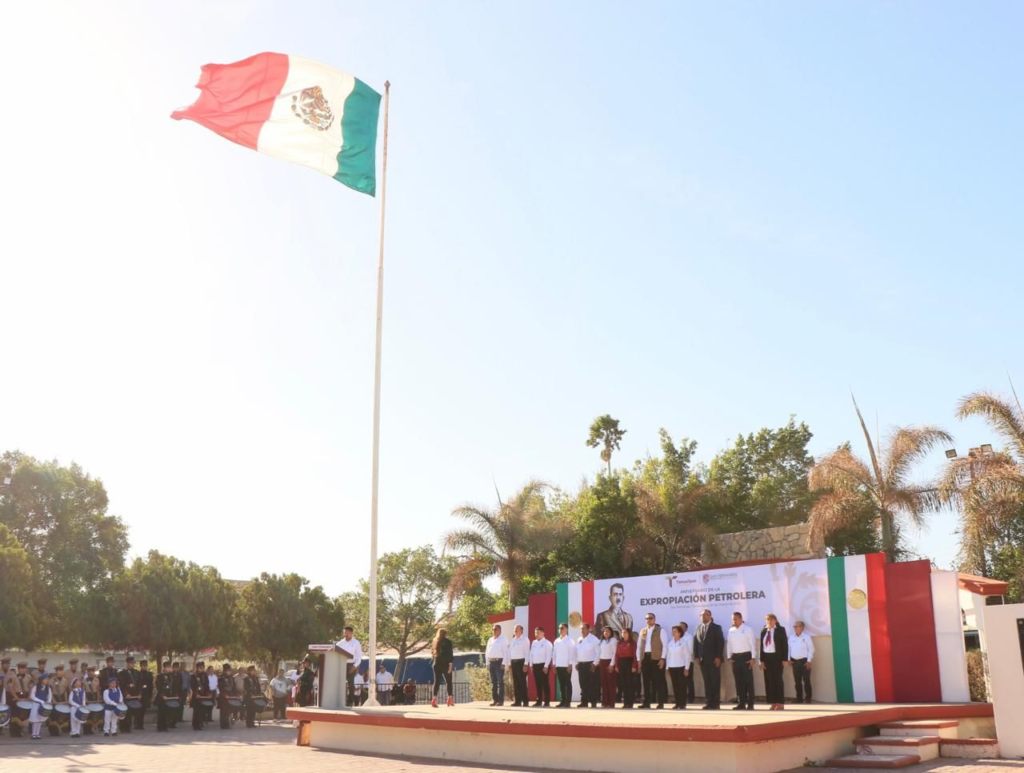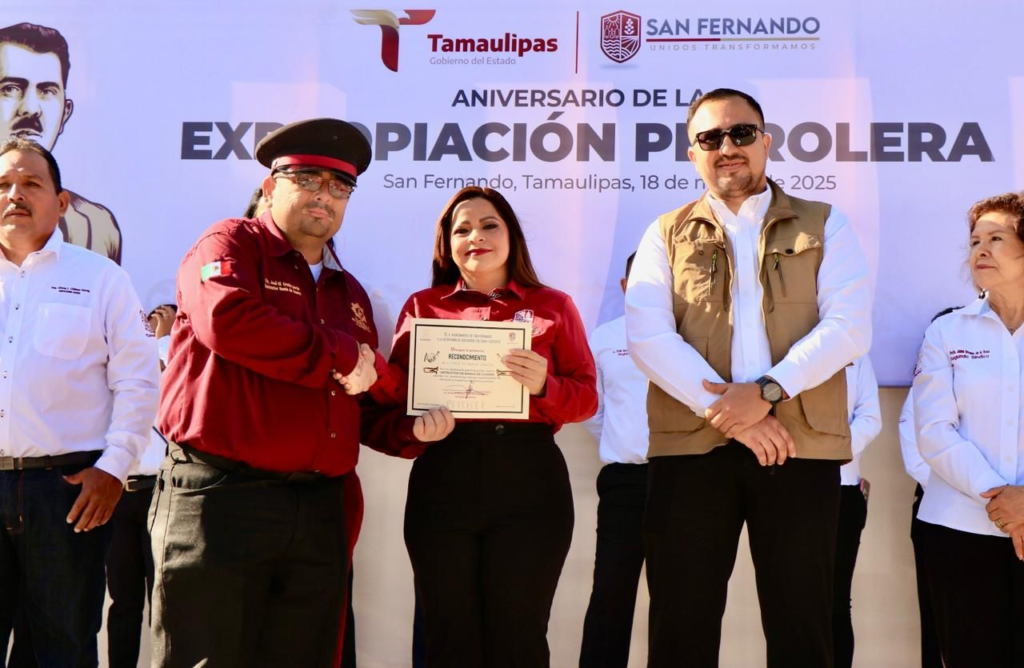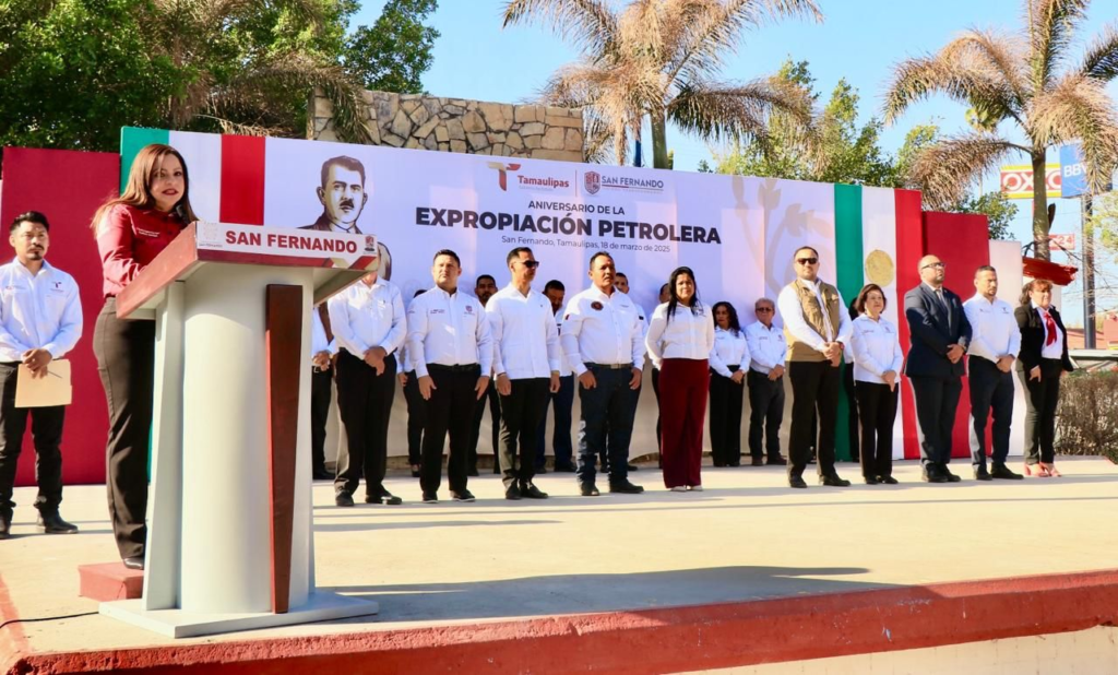 San Fernando, Tam.- En un acto cívico celebrado en la plaza principal, autoridades municipales y educativas conmemoraron el 87 aniversario de la Expropiación Petrolera, destacando la importancia histórica y económica de este acontecimiento para el país y el estado de Tamaulipas.