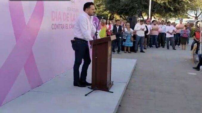 El mensaje del alcalde Lalo Yañez fue ratificar el respaldo a toda la población en acciones de salud, resaltó importancia de la prevención en tema de detección del cáncer de mamá, hizo hincapié que los varones también deben checarse cuando detecten algo anormal.
