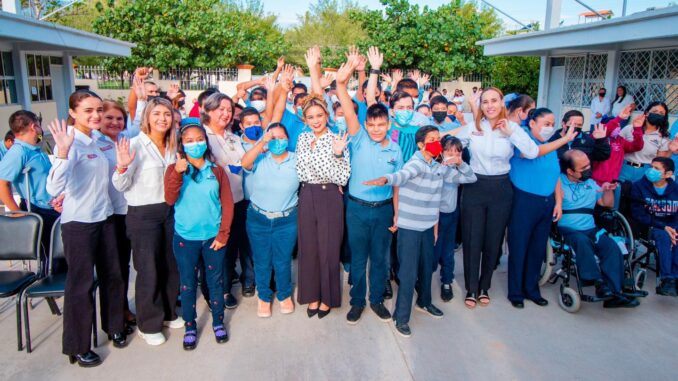 Cd. Victoria. – En el marco del Día Internacional de la Niña, la presidenta del sistema DIF Victoria, Lucía Rodríguez de Gattás, visitó y convivió con alumnos del plantel de educación especial “CAM Emprendedores”. En su estancia, reconoció la importancia de la niñez dentro de la sociedad, y en especial de las niñas, ante quienes garantizó velar por sus derechos y trabajar de la mano del presidente municipal Eduardo Gattás Báez, por un mejor futuro e igualdad de oportunidades. La primera dama del municipio tuvo oportunidad de compartir con las alumnas y alumnos, quienes participaron en dinámicas recreativas baile, manualidades, charlas motivacionales y juegos informativos organizados por el equipo de colaboradores del DIF Victoria. Las niñas y niños de la institución demostraron su entusiasmo en formar parte de las actividades que se prepararon, convivencia la cual la presidenta del DIF Lucia Rodríguez de Gattás, participó con mucho cariño. En su mensaje, refrendó su compromiso de apoyar a las personas con capacidades diferentes a través de los programas de traslado a bajo costo, apoyo con aparatos funcionales, certificados gratuitos, apoyo con trámites, medicamento y atención médica básica que el DIF Victoria tiene destinados para este grupo poblacional.