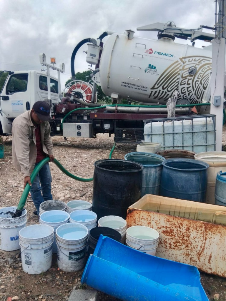 Como parte de estas acciones, se trasladó una pipa con agua para surtir tinacos y depósitos en los hogares de esta colonia popular, atendiendo así una de las principales necesidades de las familias que residen en esta zona.