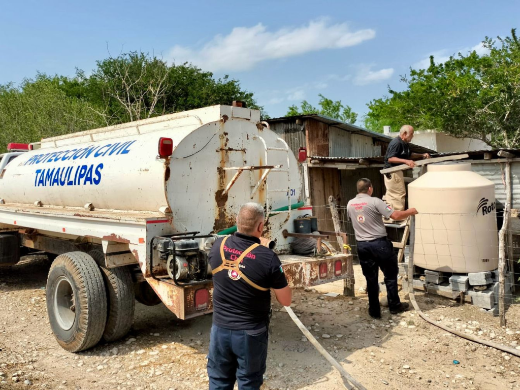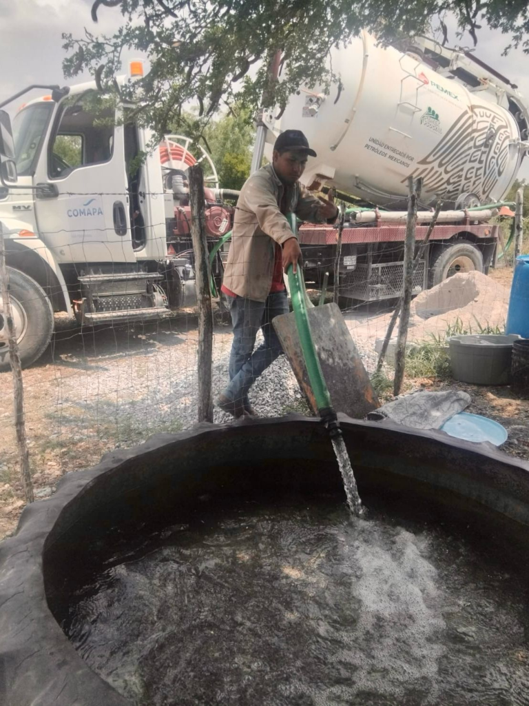 San Fernando, Tam. – El Gobierno Municipal de San Fernando, encabezado por la alcaldesa Verónica Aguirre, en coordinación con el Centro Regional De Emergencias Estatal, que dirige el Ing. Edgar A. Castillo y la Comisión Municipal de Agua Potable y Alcantarillado (COMAPA) realizaron acciones de abastecimiento de agua en la parte alta de la colonia México, ubicada al sur de la ciudad.