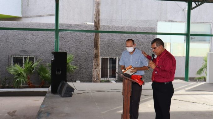 MIGUEL ALEMAN.- Ministro evangélico Armando Javier Ortega Obregón agradece públicamente todo el apoyo que el presidente municipal le ha brindado a la Iglesia de La Fe en Cristo Jesús, lo hizo durante el desarrollo de una campaña focalizada en ganar almas para Cristo, realizada en la techumbre del patinadero en esta semana que ya casi finaliza.