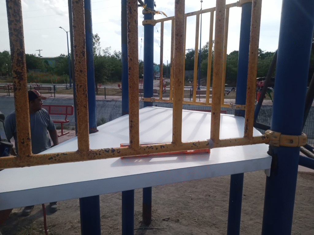 San Fernando, Tam.- Atendiendo las peticiones y quejas de la ciudadanía sobre el deterioro de años en los juegos infantiles del parque lineal en el fraccionamiento las fuentes; el Gobierno Municipal que encabeza la Lic. Verónica Aguirre ha puesto manos a la obra para recuperar este importante espacio de recreación familiar.