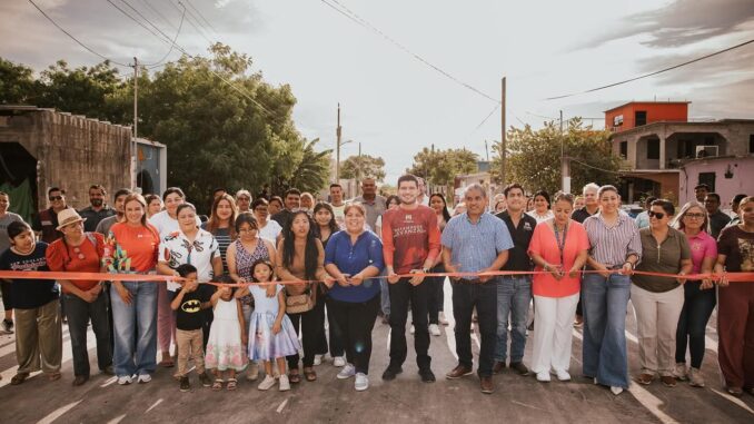 Matamoros, Tamaulipas. — Como parte del compromiso de mejorar la infraestructura urbana y elevar la calidad de vida de las familias matamorenses, el presidente municipal, Beto Granados, encabezó la inauguración de la pavimentación de la calle Integración Familiar, en el tramo que va de calle Humanidad a calle Tamaulipas, en la colonia Integración Familiar.