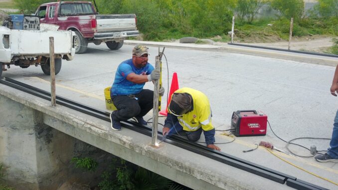 Por indicaciones del Alcalde Joel Eduardo Yáñez Villegas, personal de Servicios Primarios este martes inició con la construcción de barandales en el puente mencionado en ambos carriles, el de sur a norte y vice versa.