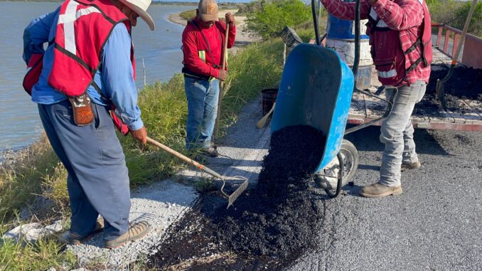 San Fernando, Tam.– En cumplimiento a los compromisos establecidos con las familias de los campos pesqueros, la alcaldesa Verónica Aguirre dio inicio al programa de bacheo en la carretera de acceso a la zona de la Laguna Madre, atendiendo una de las principales solicitudes de sus habitantes.