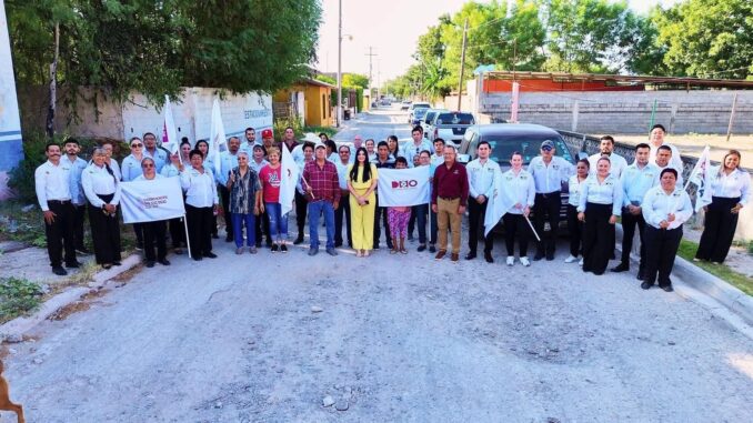 Acompañada de vecinos del sector que serán beneficiados con esta obra de pavimentación y parte de su equipo de trabajo, la primera mujer en gobernar el municipio más joven de Tamaulipas, destacó la gran labor que se realiza en equipo haciendo historia en muchos ámbitos, por lo que pidió no bajar la guardia para seguir haciendo grandes todos los proyectos que permitirán la construcción del segundo piso de la Cuarta Transformación.