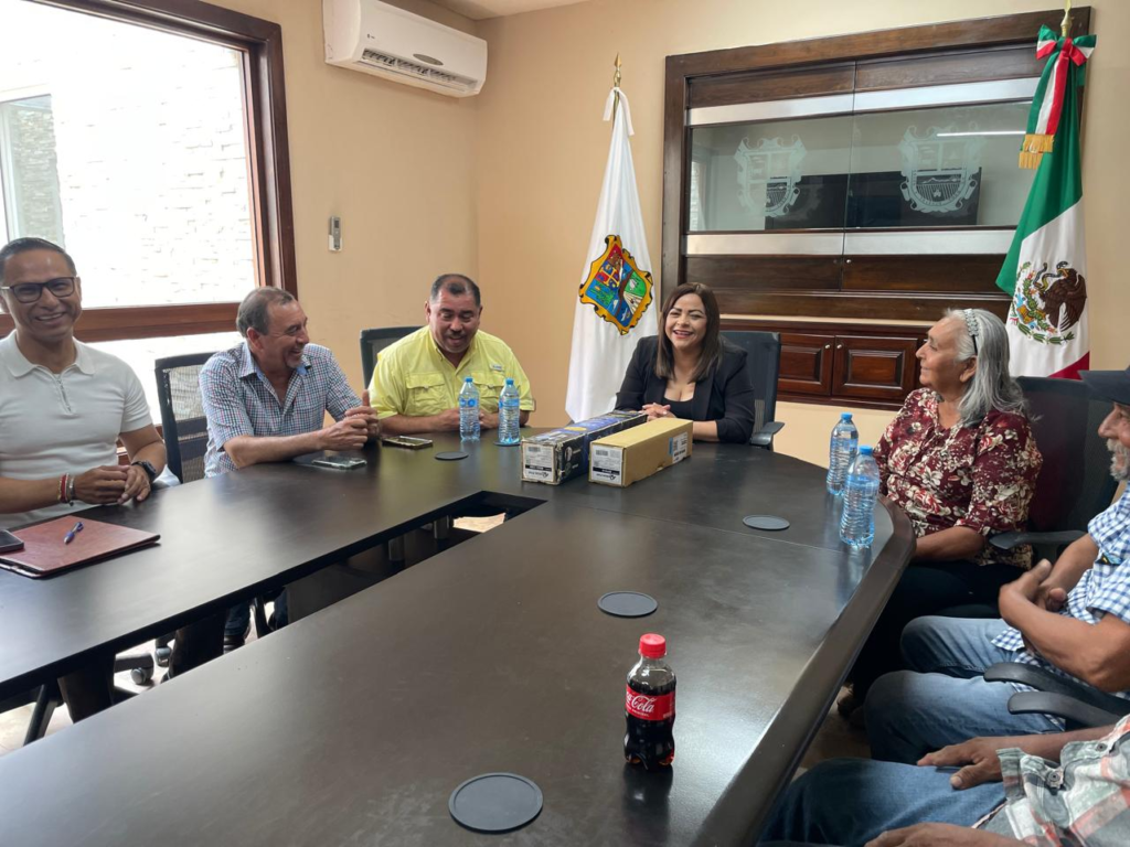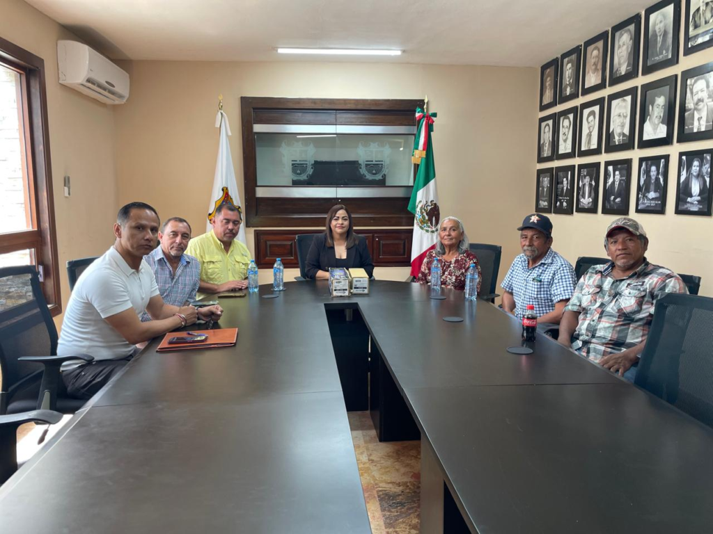 En una reunión celebrada en la sala de cabildo del Ayuntamiento, la alcaldesa, acompañada por el Secretario del Ayuntamiento, Lic. José Reséndiz Pantoja, recibió a una comisión de representantes del ejido, integrada por el delegado Saúl Ruiz Reyes, así como por Oraldo Reyes Cantú, Hermelinda García Martínez, Prisciliano Reyes Palomares y Román Reyes Salas.
