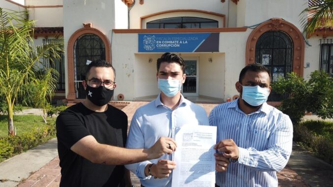 Acompañado de la Diputada Patricia Pimentel y los regidores Gerardo Valdez y Daniel González, de movimiento ciudadano, Lan Zambrano coordinador de este instituto político en el Municipio de Victoria, presentaron esta acción legal en contra del aun presidente Municipal de Victoria, ante el Fiscal Javier Castro Ormaechea.