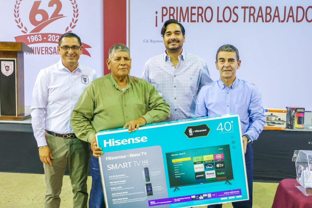 La reunión mostró la unidad y respeto entre el R. Ayuntamiento de Reynosa y los trabajadores sindicalizados, que disfrutaron de un almuerzo y por parte del Municipio recibieron bonitos regalos entregados mediante sorteo.