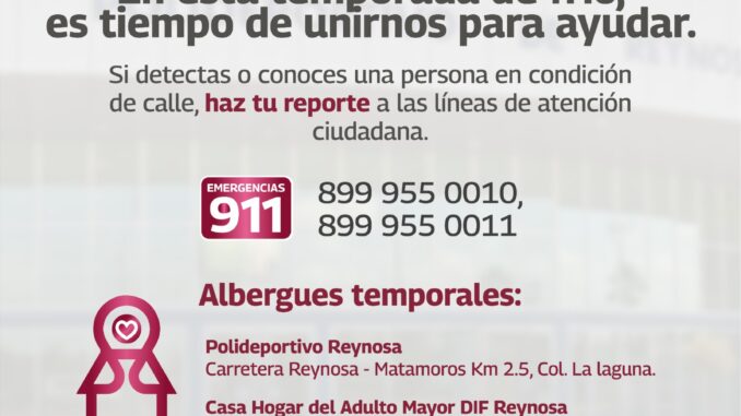 Si detectas a una persona en situación vulnerable ante las bajas temperaturas, repórtala a las líneas de atención de la Coordinación de Protección Civil y Bomberos, para que sea trasladado a un refugio temporal, 8999550010 y 8999550011 o al Número de Emergencia 911.