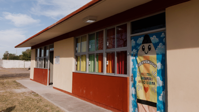 H. Matamoros, Tamaulipas.- El gobernador del estado, Américo Villarreal Anaya, ha reiterado en diversas ocasiones que «sin educación, no hay transformación», un principio que sigue guiando las acciones de los gobiernos estatal y municipal. En este marco, el presidente municipal de Matamoros, Beto Granados, llevó a cabo la entrega de una nueva aula en la primaria «José Doroteo Arango», ubicada en el fraccionamiento Pueblitos.