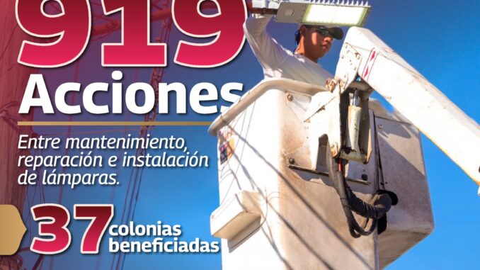 En Reynosa, la constancia en la atención al alumbrado público es Imparable, entre mantenimiento, reparación e instalación de lámparas hemos realizado 919 acciones que beneficiaron a 37 colonias, porque la iluminación de calles y avenidas coadyuva a la seguridad de las familias en nuestra ciudad.