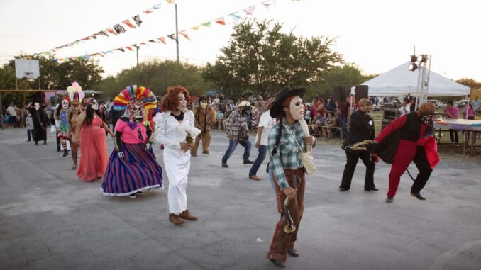 H. Matamoros, Tamaulipas.- El Área Verde del Fraccionamiento Canadá se llenó de color, música y tradición durante el Festival de la Huesuda.