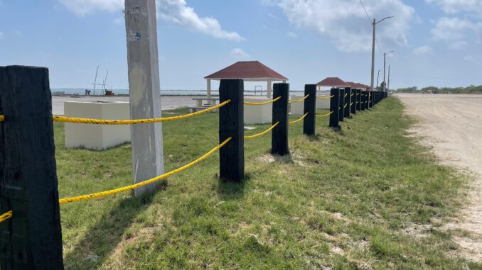 Se llevan a cabo trabajos de pintado y sellado de los barrotes limitantes, así como la instalación de mecate para delimitar áreas y reforzar la seguridad de los visitantes.