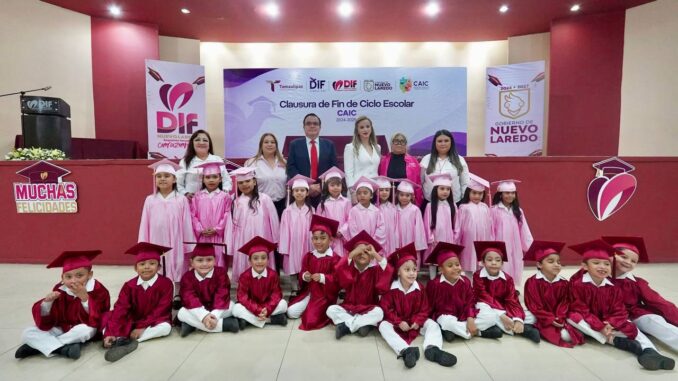 NUEVO LAREDO, TAM.- En un ambiente lleno de emoción, ternura y orgullo, el Sistema para el Desarrollo Integral de la Familia (DIF) de Nuevo Laredo celebró la ceremonia de graduación de la generación 2024–2025 de los Centros de Asistencia Infantil Comunitaria (CAIC), marcando el fin de una etapa fundamental en la vida de 96 niñas y niños que hoy concluyen su educación preescolar.