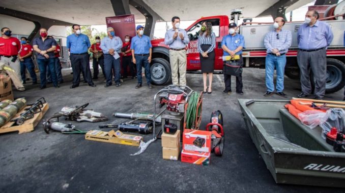 El equipo donado consiste en: camión contra incendios de respuesta rápida, que incluye su bomba, tanque, es una unidade de doble diferencial que trabaja a base de diesel; también se entregó una  lancha, dos quijadas de la vida, una de ellas es eléctrica  y otra hidráulica, cilindros de aires respirable para respiración de los bomberos, cajas conteniendo overoles, botas y demás equipo que utilizan los elementos de bomberos para el combate de incendios.