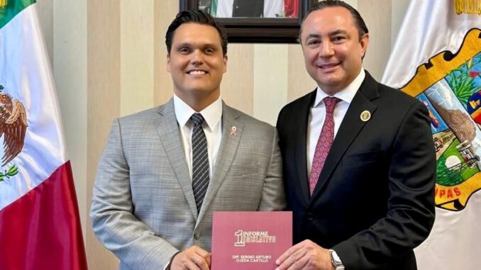 El diputado local por el distrito 3, Sergio “Cheko” Ojeda Castillo, entregó formalmente su primer informe de actividades legislativas ante el Honorable Congreso del Estado de Tamaulipas. El legislador de MORENA cumplió con este requisito constitucional haciendo entrega del documento impreso al presidente de la junta de gobierno, el diputado Humberto Prieto Herrera.