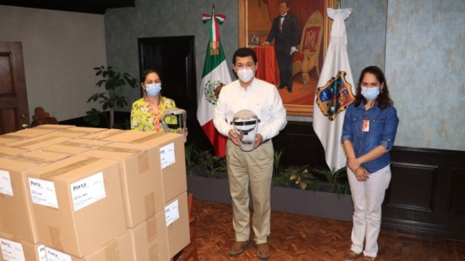 El alcalde Mario Alberto López Hernández agradeció a la empresa Porta System la donación de 25 caretas con características especiales para la protección de los trabajadores de la salud que atienden a pacientes con síntomas o están enfermos de coronavirus.