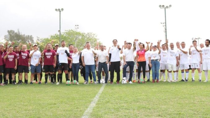 El campo deportivo “Joaquín del Olmo” se vistió de gala, donde el candidato a Presidente Municipal Erasmo González por la Coalición MORENA-VERDE-PT, arribó en compañía del exfutbolista internacional y seleccionado nacional Joaquín del Olmo, para unirse a un partido amistoso entre los equipos «Mutualidad Jaibos» y Plataformeros. Estuvieron presentes, Cynthia Jaime “La Comaye”, Claudio de Leija Hinojosa, candidatos a diputados al Congreso Local por los Distritos 19 y 20; así como un legendario del fútbol profesional José Luis “El Chocolate” Hernández.